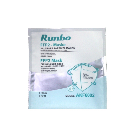 CE-Kennzeichnung CE 0370- FFP2 NR nach EN 149:2001 + A1:2009 Diese Gesichtsmaske ist eine FFP2- Atemschutzmaske mit einem ergonomischen Design, das perfekt auf Kinn, Nase und Seiten Ihres Gesichts passt. Die Ohren sind elastische Schnüre, so dass sie sicher um Ihr Gesicht passen. Geschützt gegen Staub und Partikel. Filtrationseffizienz> 95%. Diese Masken haben einen DEKRA-Bericht. Zertifizierte FFP2 Maske ohne Ventil DIN EN 149 (CE 0370) Diese FFP2 Masken, mit Kopfbändern, bieten sowohl Eigenschutz als auch Fremdschutz nach EN 149 und EU Richtlinie 2016/425. Filtrierende Halbmasken (filtering face piece, FFP) haben die Zweckbestimmung, den Träger vor Partikeln, Tröpfchen sowie festen oder flüssigen Aerosolen zu schützen. Masken ohne Ausatemventil filtern sowohl die eingeatmete Luft als auch die Ausatemluft und bieten daher sowohl Eigen- als auch Fremdschutz. Die Halbmaske ist für den einmaligen Gebrauch bestimmt und ohne Ventil. Die ergonomische Passform mit einstellbarem Nasenbügel und weichem Nasenkissen bietet hohen Tragekomfort, ummantelten Elastikbänder bieten einen sicheren Sitz. Bei Kontakt oder Pflege von Menschen, mit einer Coronavirus SARS-CoV-2 Infektion, empfiehlt das Robert Koch Institut (RKI) die Verwendung von FFP2 Masken sowie FFP3 Masken. Bei uns kaufen Sie Qualität: Das Prüfinstitut Dekra, diese benannte Stelle Überprüft die Atemschutzmaske um Qualität und Schutz zu gewährleisten. Die KOUMASK Masken, erfüllen die Anforderungen der EN149:2001 + A1:2009 und der EU Richtlinie 2016/425. Die entsprechenden CE Kennzeichnungen sind auf der Vorderseite sowie der Verpackung angebracht. Die Masken sind hygienisch, einzeln verpackt. Eine dicht sitzende FFP2 Atemschutzmaske stellt einen geeigneten Schutz vor infektiösen Aerosolen, einschließlich Viren & Corona dar.